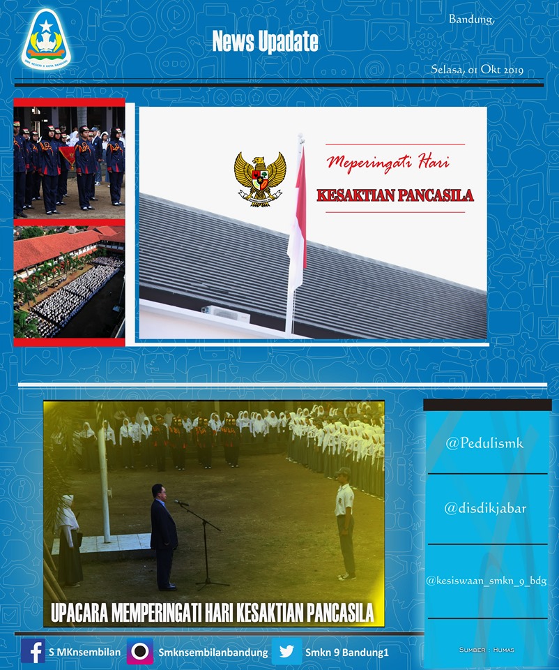 SMKN 9 Bandung melaksanakan Upacara pengibaran bendera untuk memperingati Hari Kesaktian Pancasila 2019 tahun ini.