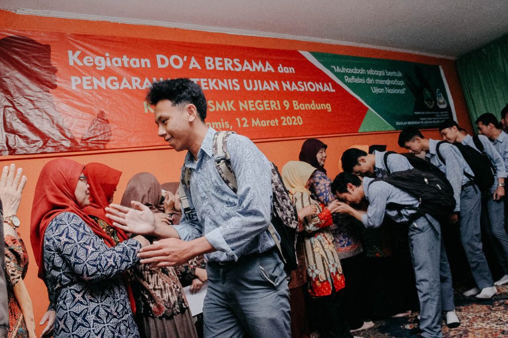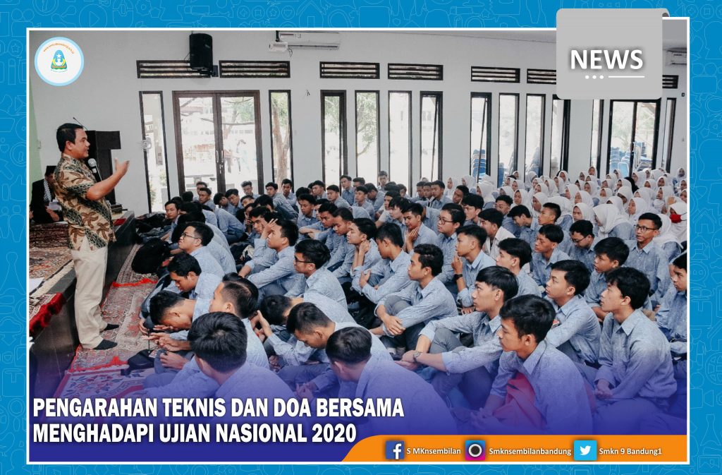 Siswa Kelas XII SMKN 9 Bandung mengikuti kegiatan Doa Bersama dan Pengarahan Teknis Ujian Nasional pada hari Kamis, 12 Maret 2020 bertempat di ruang aula. Kegiatan ini dibuka oleh Plt. Kepala Sekolah Drs. Tatang Gunawan, M.M.Pd., diikuti oleh para guru dan wali Kelas XII.