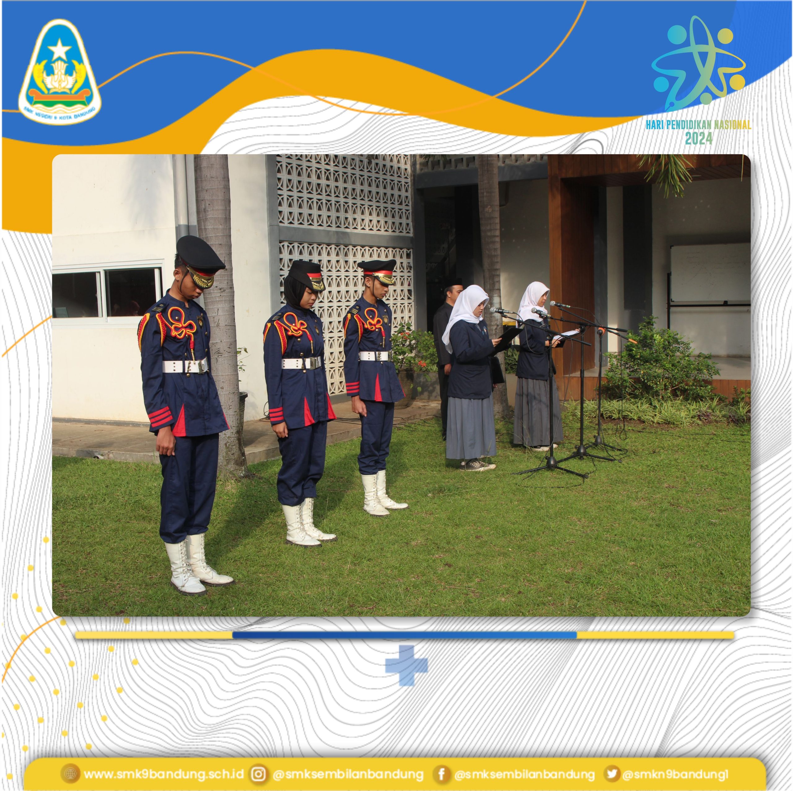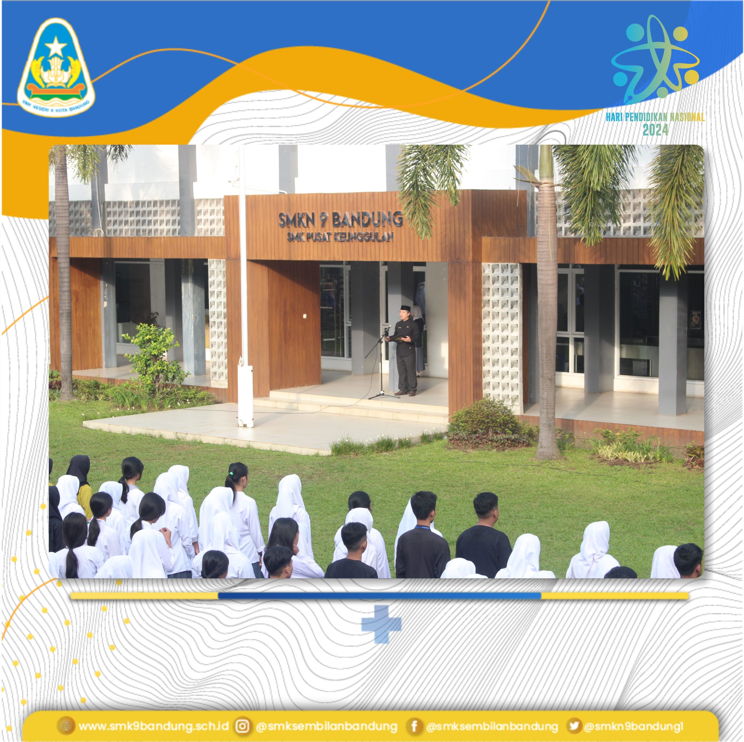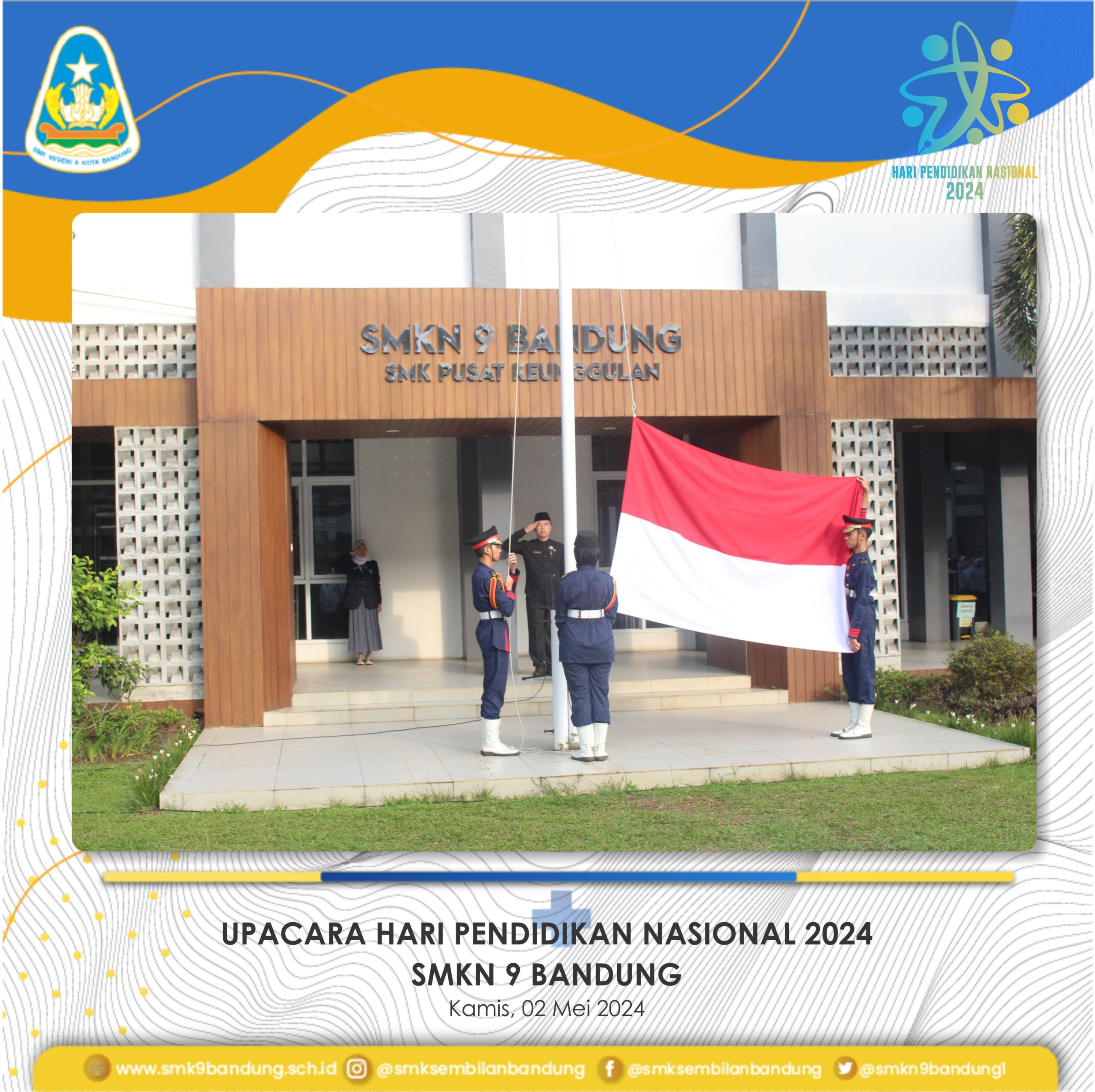 Peserta didik SMKN 9 Bandung mengikuti Upacara Penaikan Bendera Memperingati Hari Pendidikan Nasional tahun 2024. Upacara kali ini dilaksanakan pada tanggal 02 Mei 2024, dengan petugas upacara dilaksanakan oleh OSIS, dan pembina upacara Yudhy Hendayani, S.Pd., M.M., Wakil Kepala Sekolah Bidang Kurikulum SMKN 9 Bandung, dan diikuti oleh para pendidik dan tenaga kependidikan.
