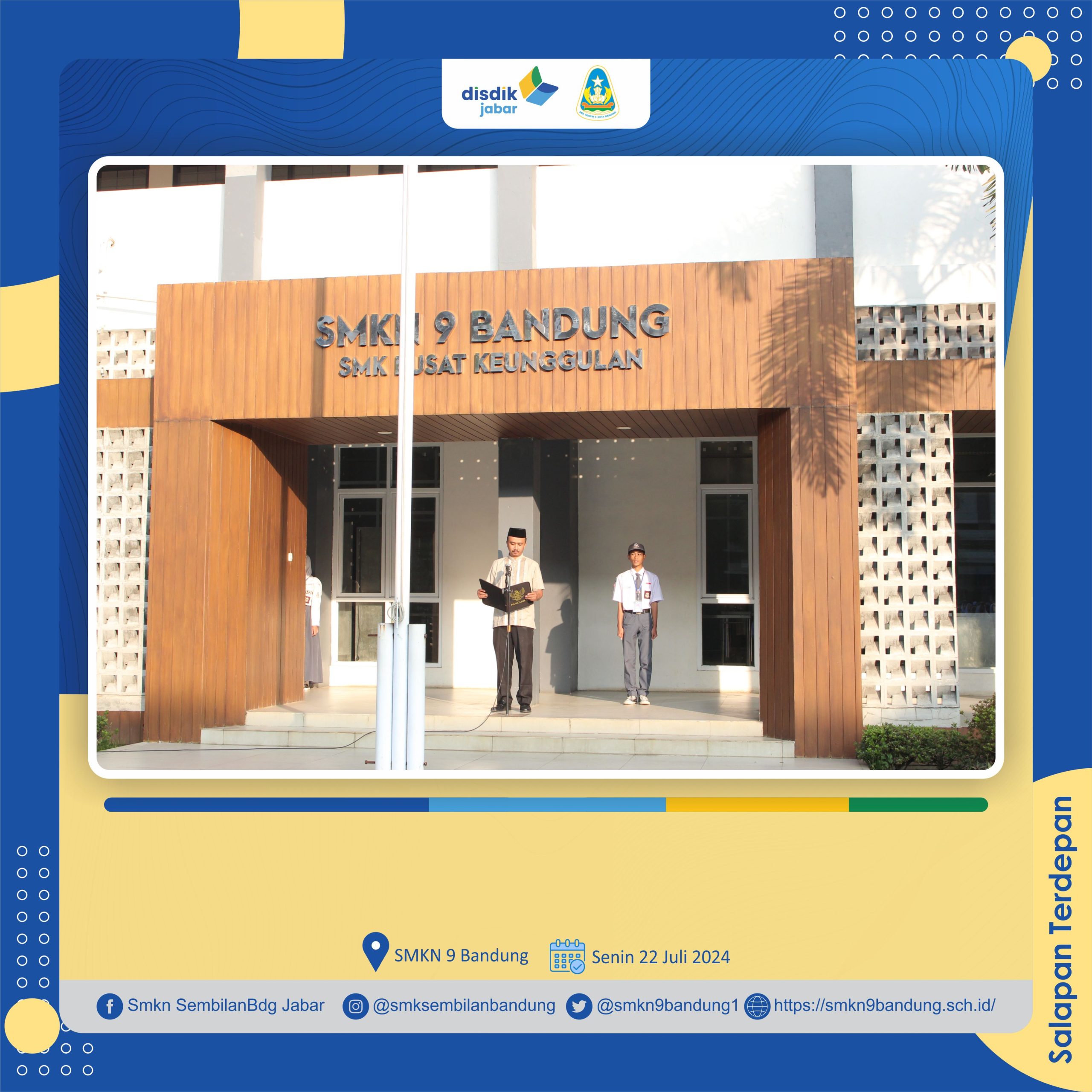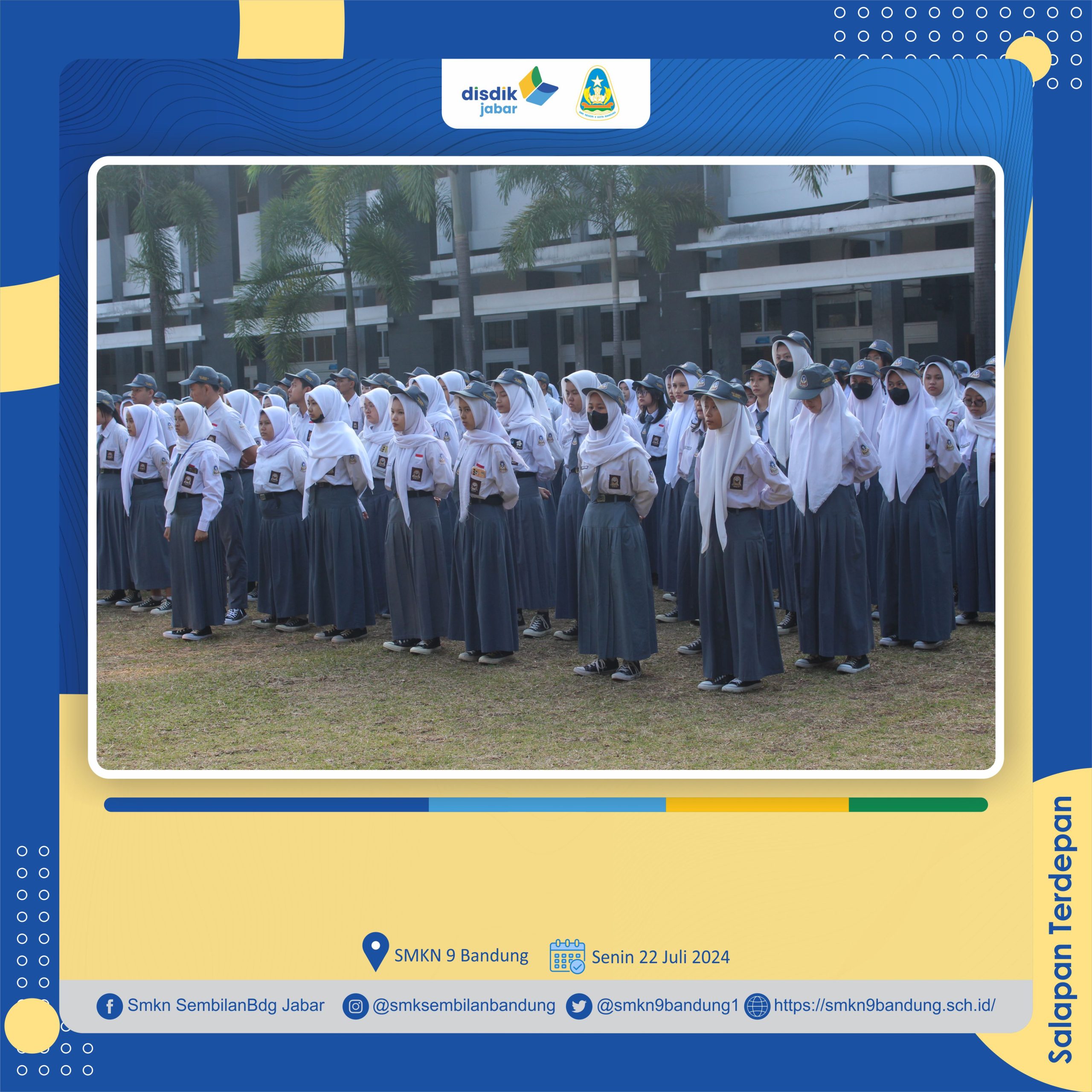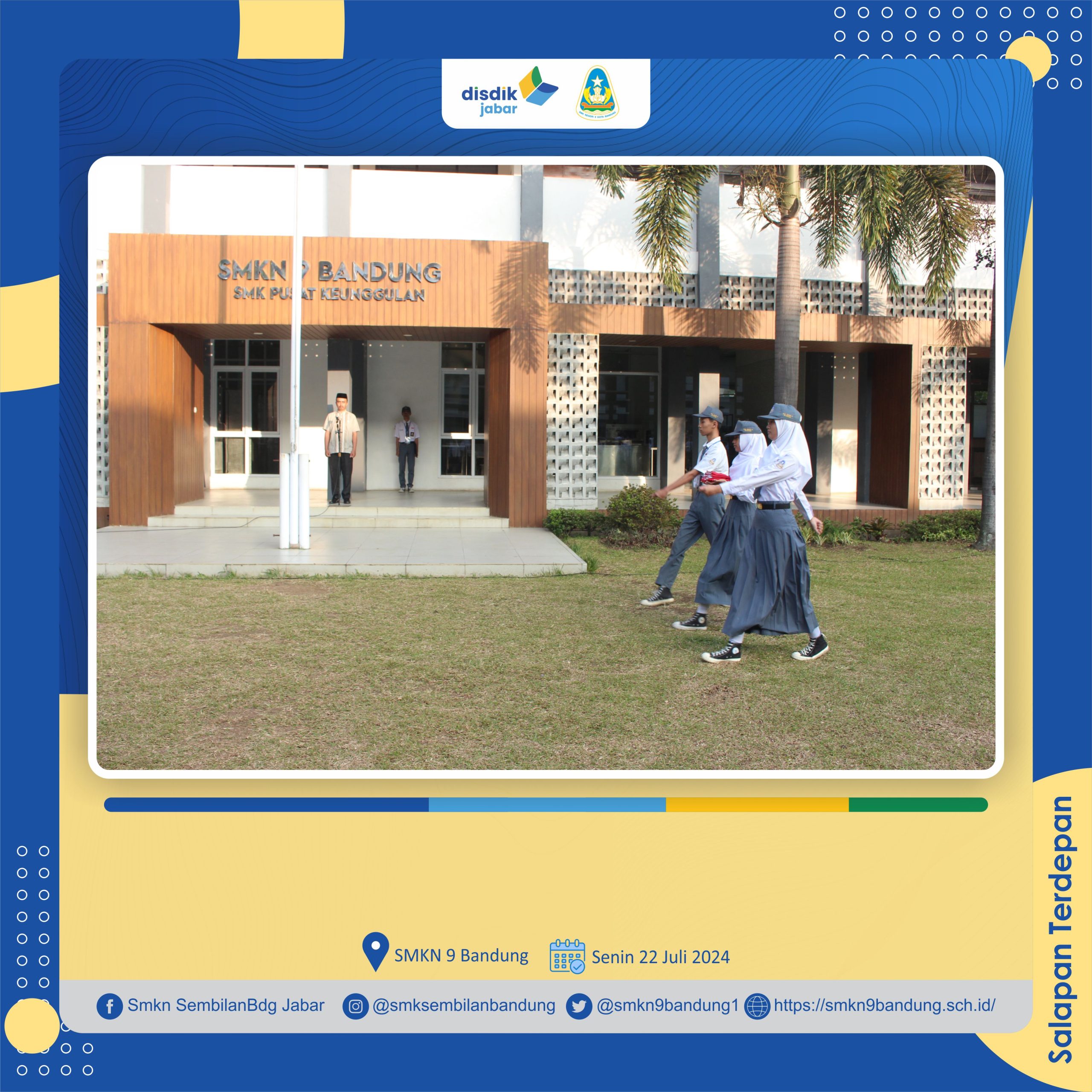 Peserta didik SMKN 9 Bandung mengikuti upacara penaikan bendera hari Senin, 22 Juli 2024. Upacara juga diikuti oleh para pendidik dan tenaga kependidikan, dengan pembina upacara, Idfi Nurfajar, S.Pd. Melalui kegiatan upacara bendera, diharapkan dapat memberikan manfaat yang sangat baik dalam upaya penumbuhan budi pekerti dan karakter bangsa, terutama nilai-nilai kebangsaan, cinta tanah air dan kebhinekaan bagi para peserta didik.