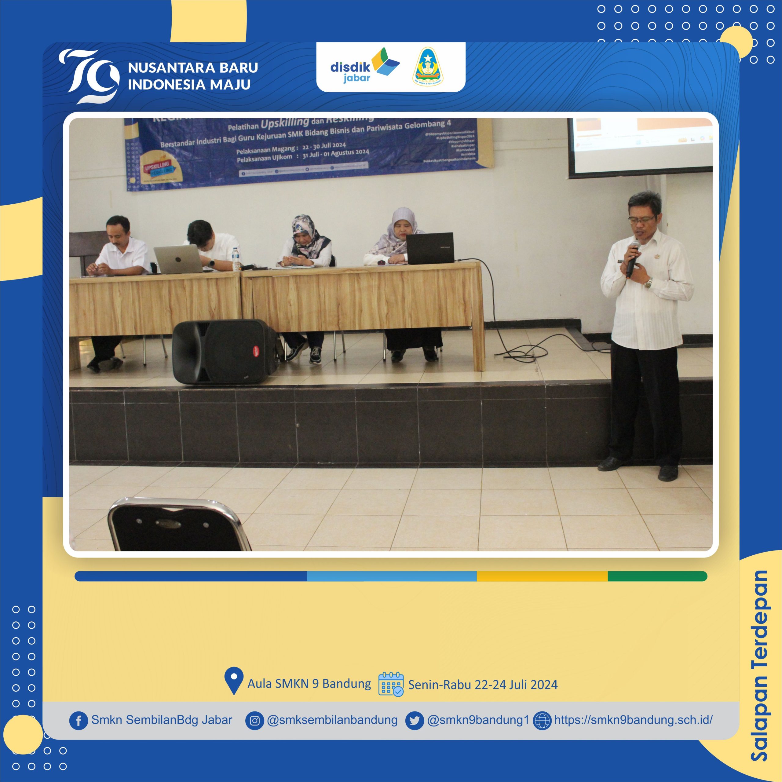 Kegiatan Rapat Dinas SMK Negeri 9 Bandung yang dilaksanakan pada hari Rabu, 31 Juli 2024 Tahun Pelajaran 2024/2024. Dalam kegiatan rapat ini dipimpin langsung oleh Kepala SMK Negeri 9 Bandung Hj. Yani Heryani, M.M.Pd., dan dihadiri oleh para wakil kepala sekolah dan juga ketua program keahlian Serta di ikuti oleh seluruh Guru dan Karyawaan SMKN 9 Bandung.