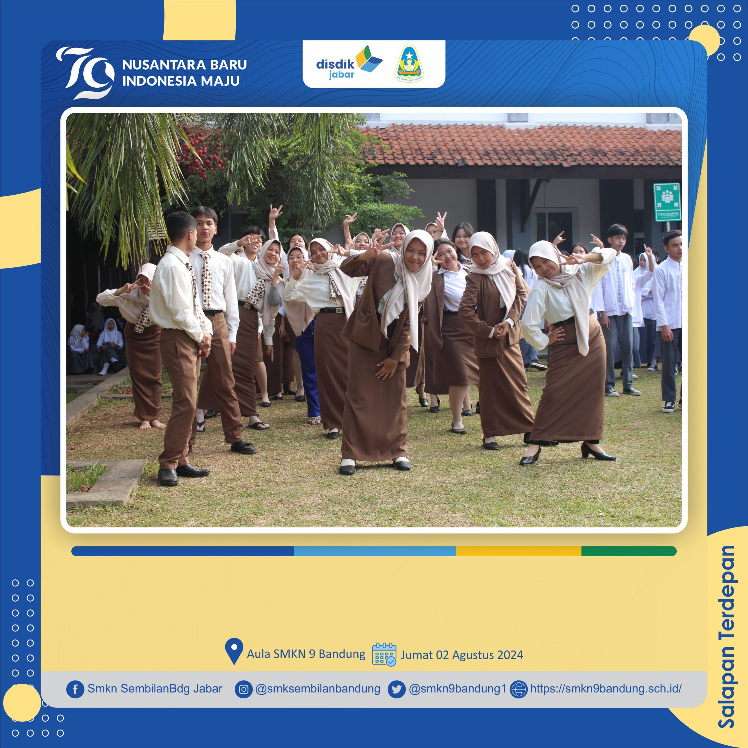 Senam Kebugaran SMKN 9 Bandung Jumat 02 Agustus 2024. Kegiatan Senam ini rutin di laksanakan di jumat pagi bertempat di lapang upacara kegiatan ini di ikuti oleh siswa siswi dan guru serta karyawan SMKN 9 Bandung.