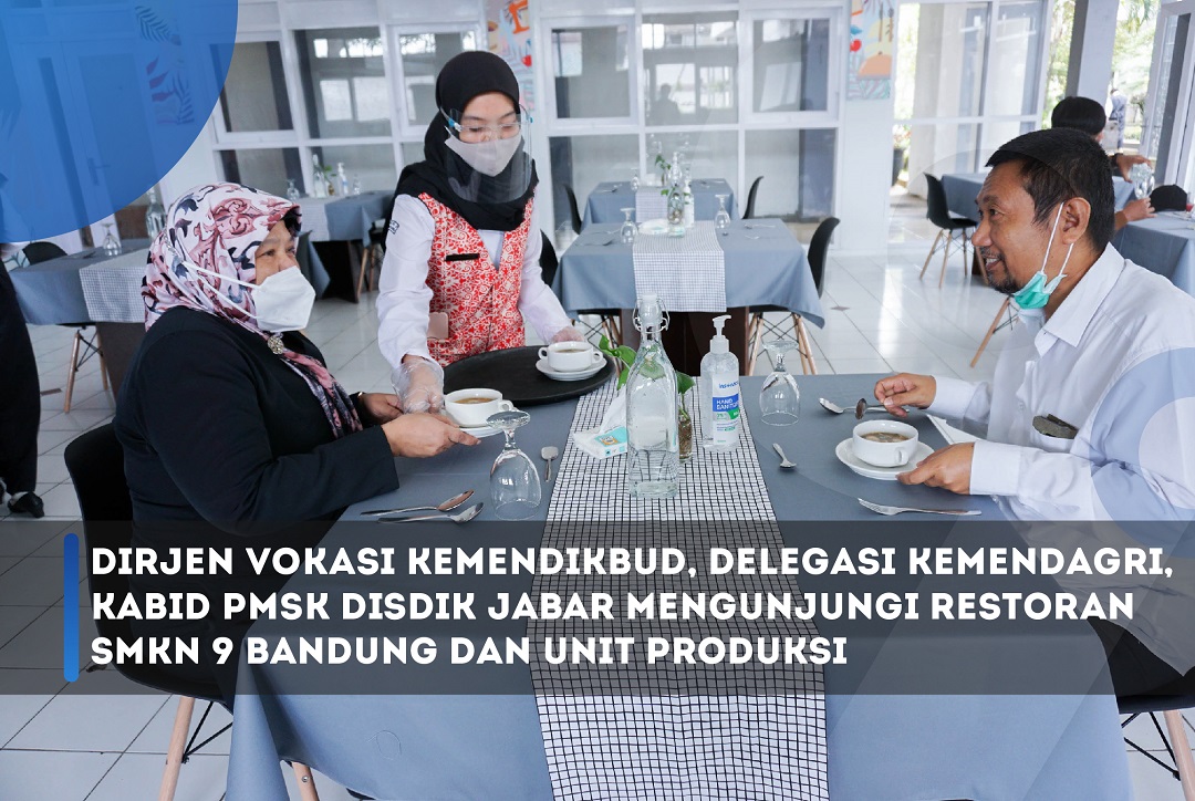 Dirjen Vokasi Kemendikbud, Delegasi Kemendagri, Kabid PMSK Disdik Jabar Mengunjungi Restoran SMKN 9 Bandung dan Unit Produksi