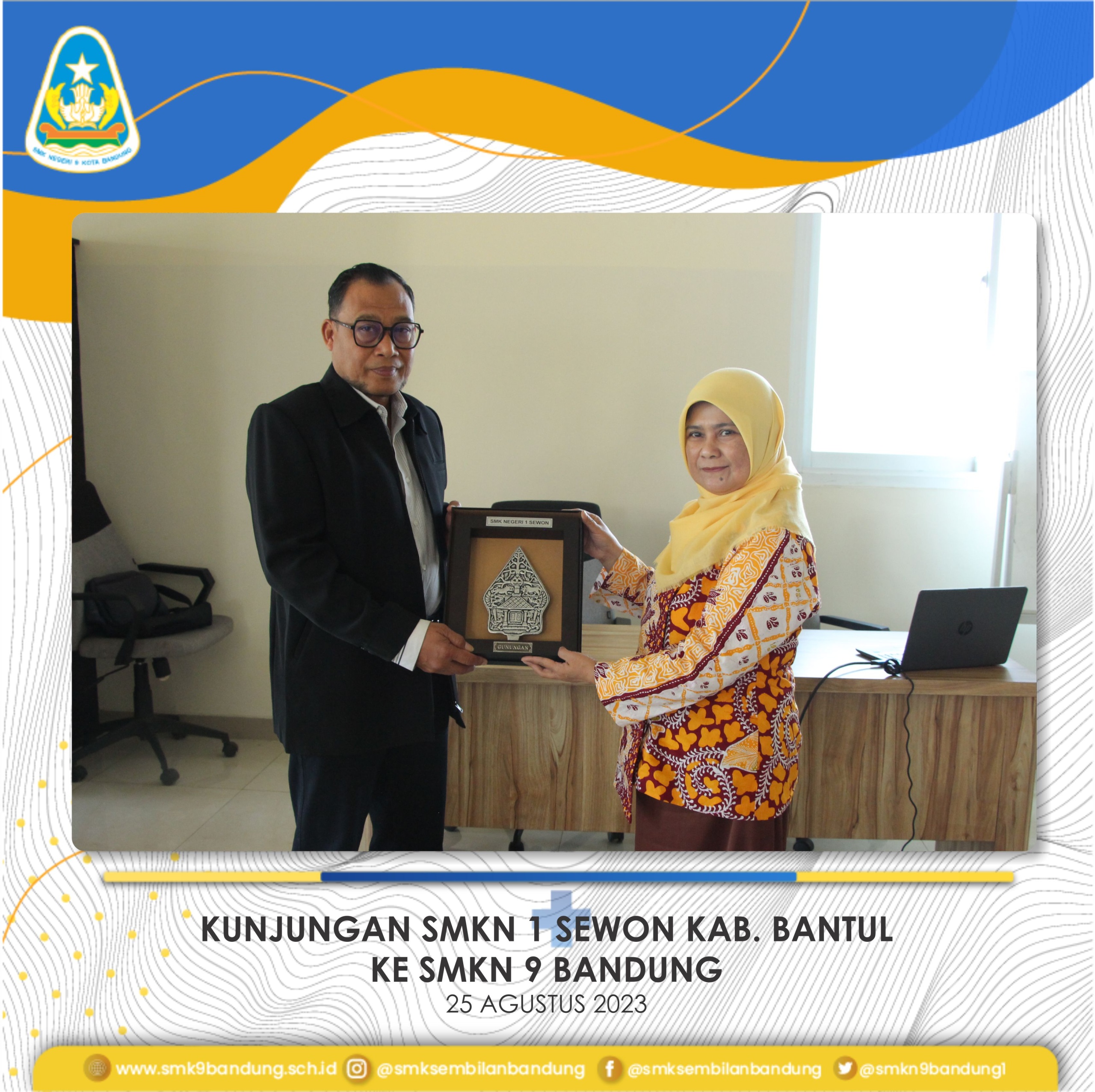 Rombongan diterima langsung oleh Kepala SMKN 9 Bandung, Yani Heryani, M.M.Pd. pada hari Jumat, 25 agustus 2023 di Meeting Room Edotel. Kunjungan SMKN 1 Sewon Kab. Bantul Prov. Yogyakarta ke SMKN 9 Bandung, dalam rangka studi tiru Teaching Factory dan SMK BLUD.