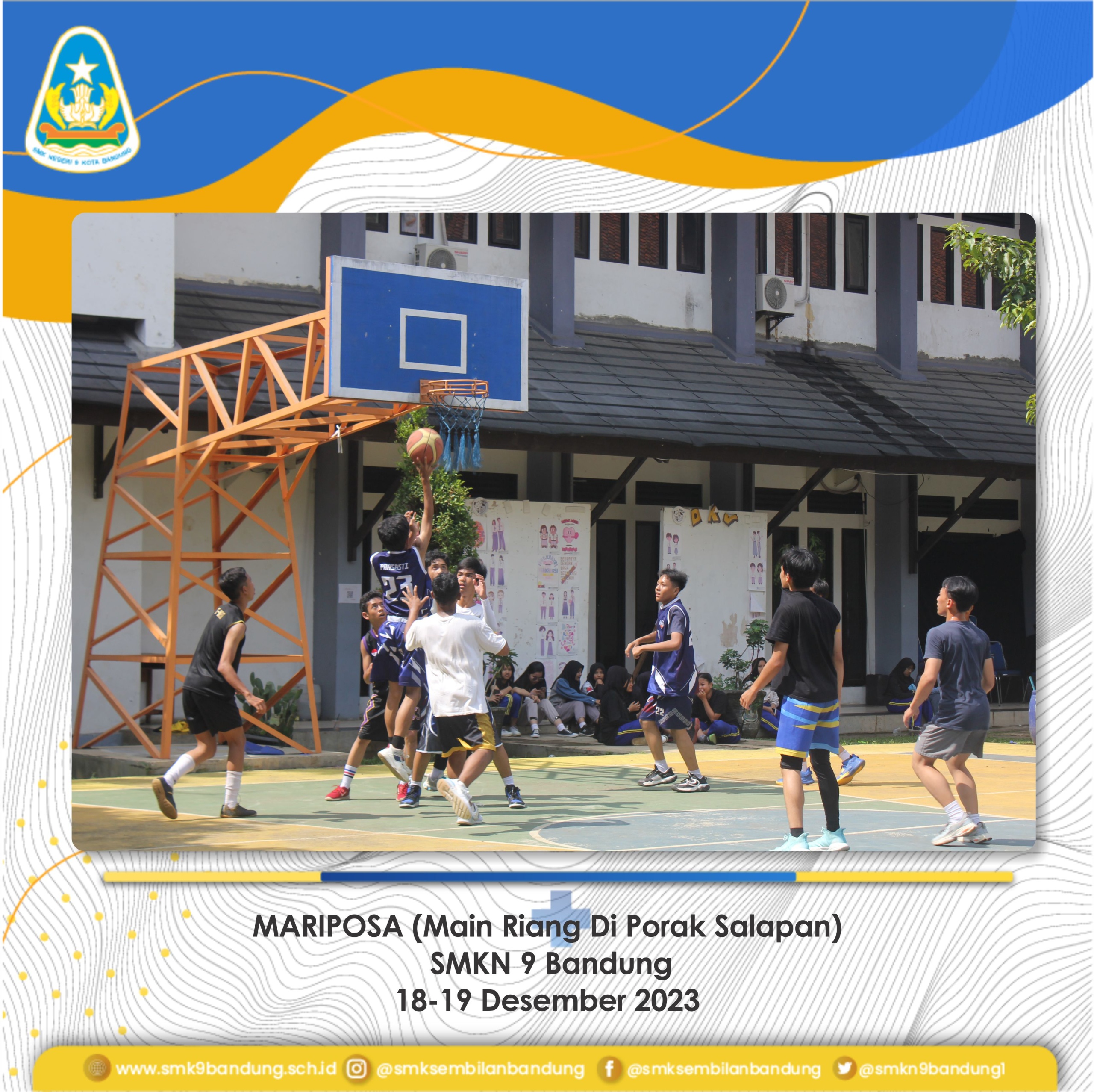 Main Riang Di Porak Salapan (MARIPOSA) adalah kegiatan yang diinisiasi oleh Sekbid 7 OSIS SMKN 9 Bandung, dilaksanakan selama tiga hari dari tanggal 18 s.d. 20 Desember 2023. Kegiatan ini dilaksanakan dalam rangka mewadahi kreatifitas para peserta didik, khususnya selama masa jeda saat menunggu pembagian laporan hasil belajar semester ganjil 2023/2024. Para peserta didik nampak antusias dalam mengikuti kegiatan yang dikemas dalam beberapa perlombaan seperti futsal, bola basket, bola beracun, estafet sarung air, dan e-sport. Selain itu, ada juga bazar aneka makanan dan minuman ringan yang diisi oleh stand dari setiap kelas.