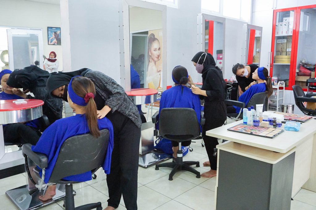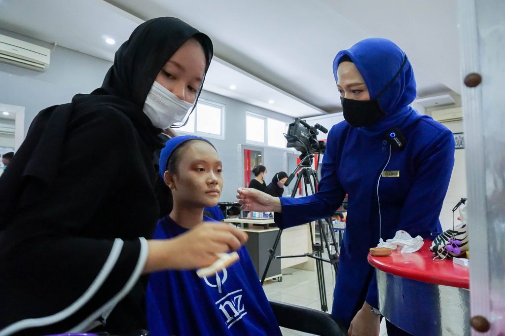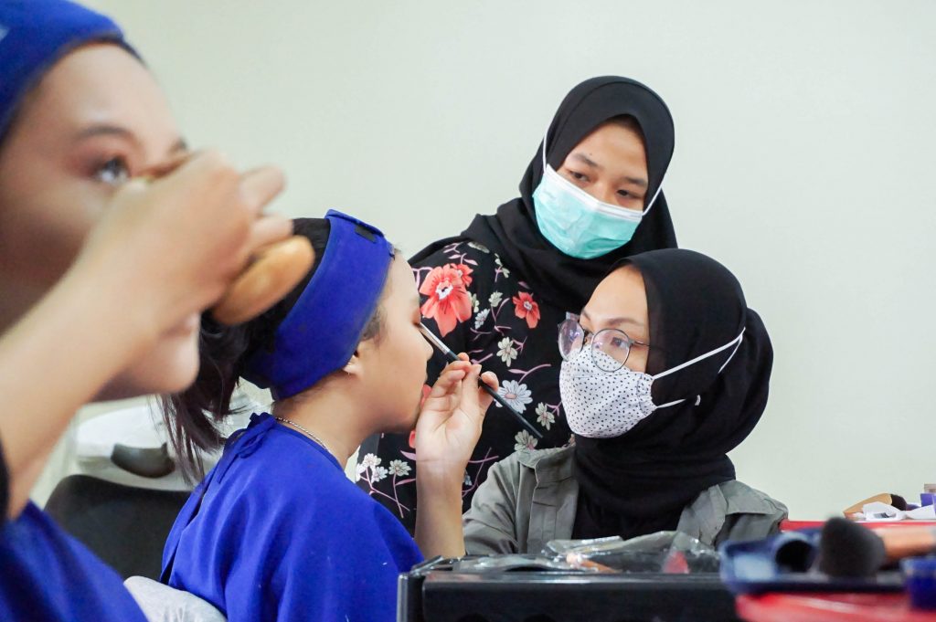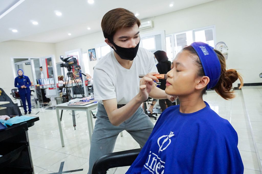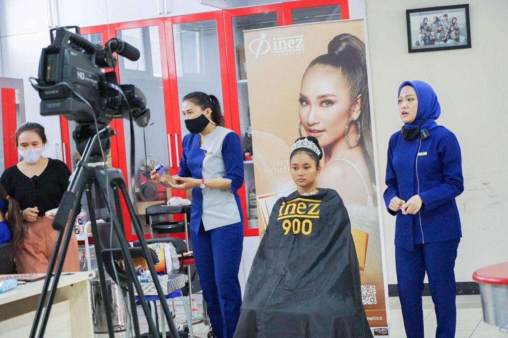 Pada pertemuan ke-2 kali ini Tata Kecantikan Kulit dan Rambut bekerjasama dengan Inez Cosmetics untuk mengisi materi tentang MakeUp artis untuk pengantin. Kegiatan ini berlangsung secara lancar dan diikuti oleh sebagian siswa yang sedang Praktik Kerja Lapangan di sekolah dan siswa yang tidak mengikuti di sekolah bisa melihat secara virtual di zoom dan live streaming di youtube.