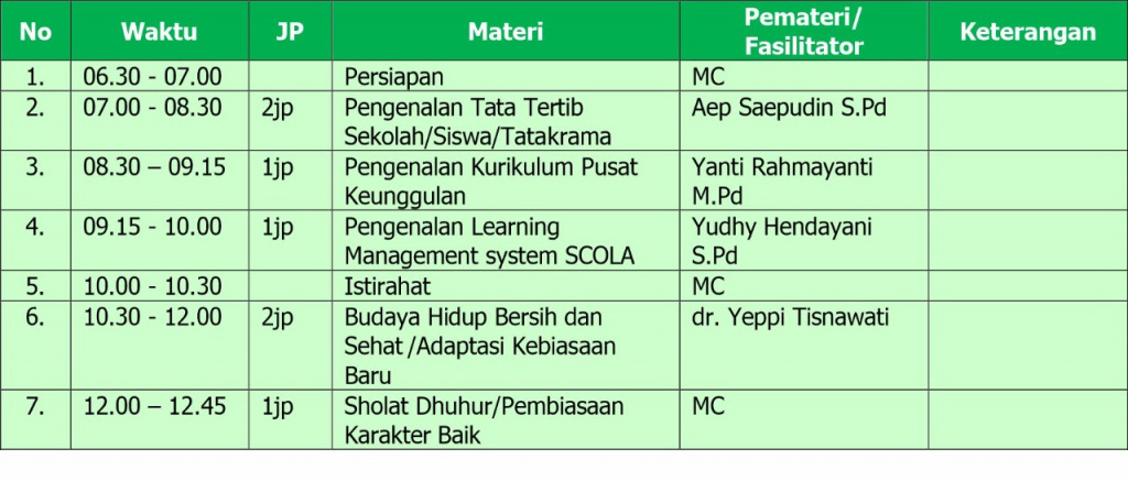 - Menumbuhkan motviasi, semangat, dan cara belajara efektif sebagai siswa baru.
