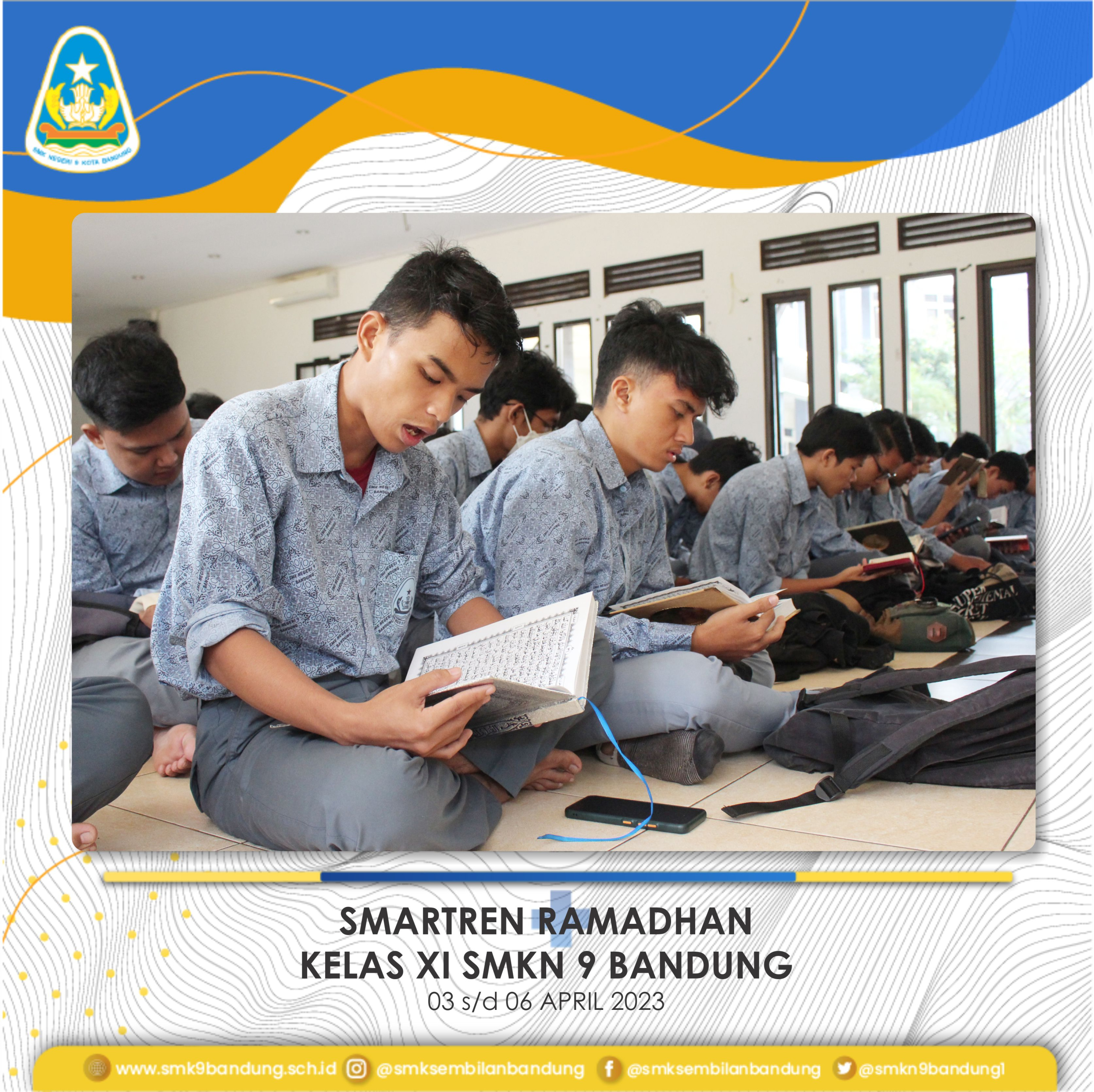 Peserta Didik Kelas XI SMKN 9 Bandung mengikuti kegiatan SmartTren Ramadhan 2023 di sekolah yang dilaksanakan pada tanggal 03 s.d. 06 april 2023. Kegiatan yang berlangsung di Aula SMKN 9 Bandung diisi dengan berbagai jadwal diantaranya tadarus Al Quran bersama, kajian Islam di sekolah, shalat berjamaah, dan acara keagamaan lainnya.