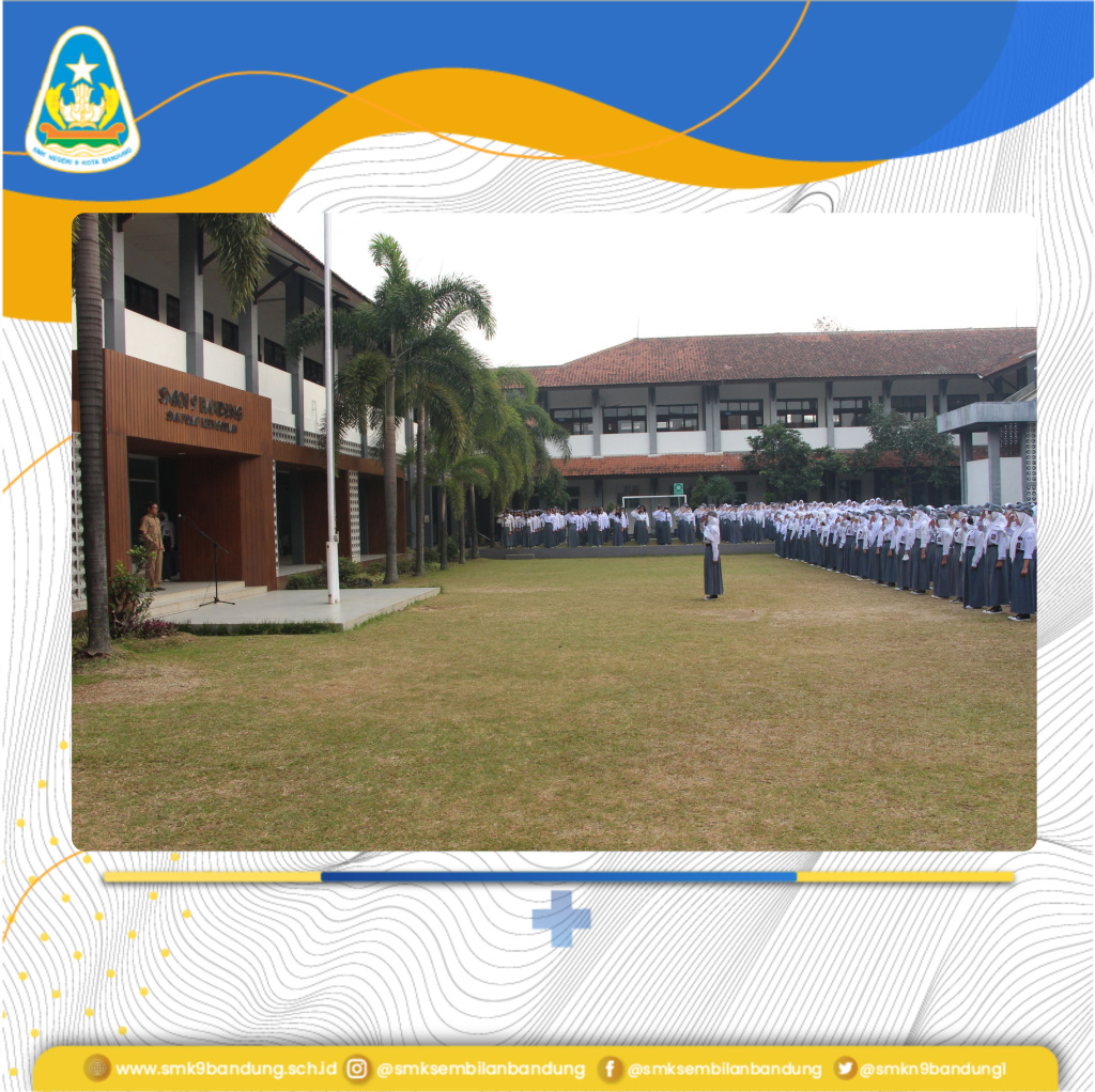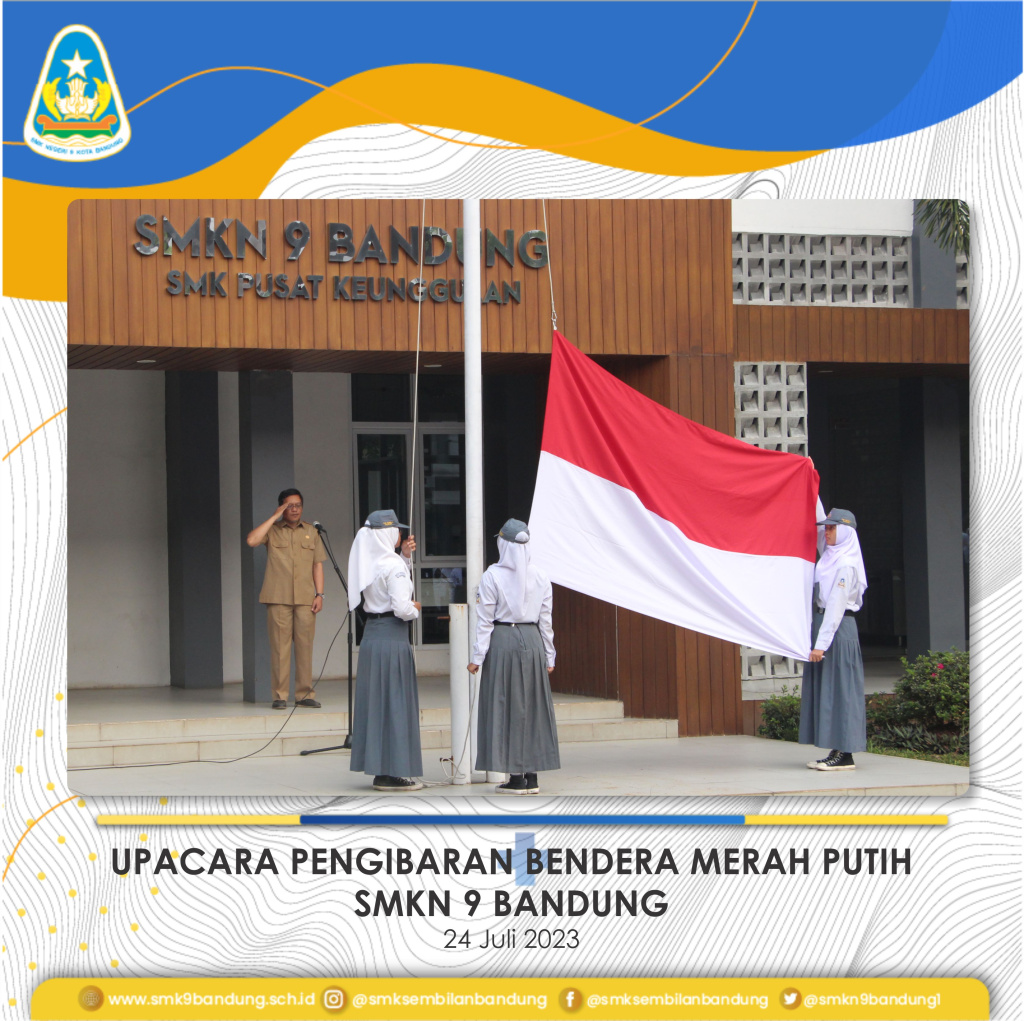 Upacara penaikan bendera hari Senin, 24 Juli 2023 di lapangan SMKN 9 Bandung diikuti oleh para pendidik, tenaga kependidikan dan peserra didik di lingkungan SMKN 9 Bandung. Petugas upacara dilaksanakan oleh pengurus OSIS, dengan pembina upacara Wakasek Kurikulum, Yadi Suryadi, S.Pd.