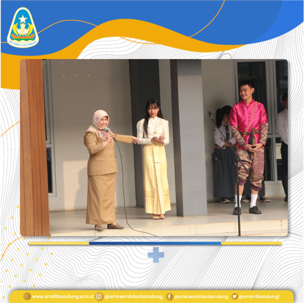 Selesai upacara, dilanjutkan perkenalan peserta pertukaran pelajar dari Thailand yang diperkenalkan langsung kepada para peserta didik SMKN 9 Bandung oleh kepala sekolah, Yani Heryani, M.M.Pd., disambut tepuk tangan meriah oleh seluruh peserta upacara.